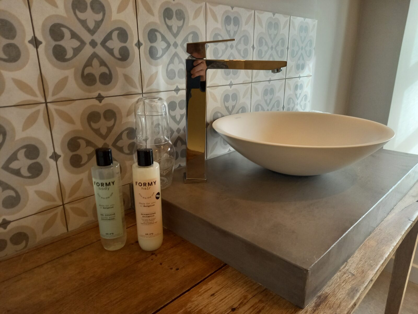 « C’est tout naturellement que nous nous sommes tournés vers les produits Formy. Ils font parties de nos valeurs : des produits naturels, locaux, avec un design élégant et raffiné. Nous avons optés pour le savon 2 en 1 avec le porte savon qui est soigné et discret. Le bien être de nos hôtes est notre priorité. C’est avec la gamme Formy que nous souhaitons travailler afin de continuer à satisfaire nos hôtes. »
