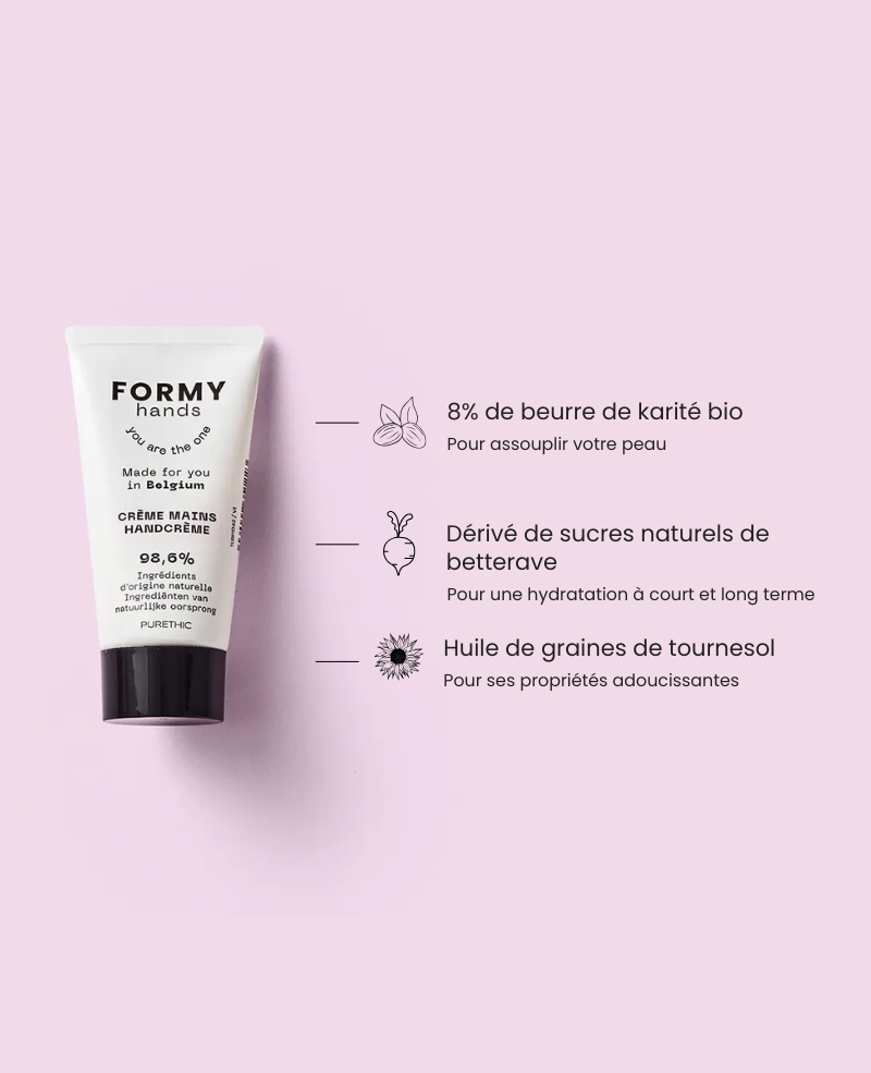 Ma crème mains formy contient 18 ingrédients, dont