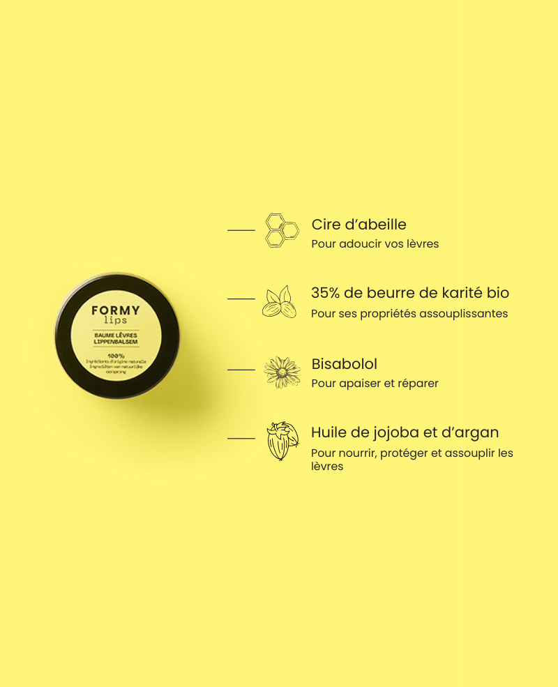 Grâce à la cire d’abeille, le baume forme un film protecteur longue durée sur les lèvres. Il résiste au temps et aux agressions extérieures, idéal en hiver ou par temps venteux.