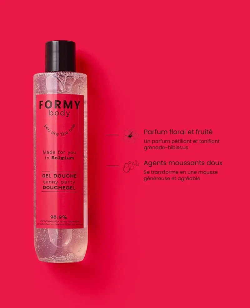 Mon gel douche Sunny Party est disponible à la vente via des associations, avec 2 € reversés par flacon vendu. En savoir plus sur l’action solidaire Formy.